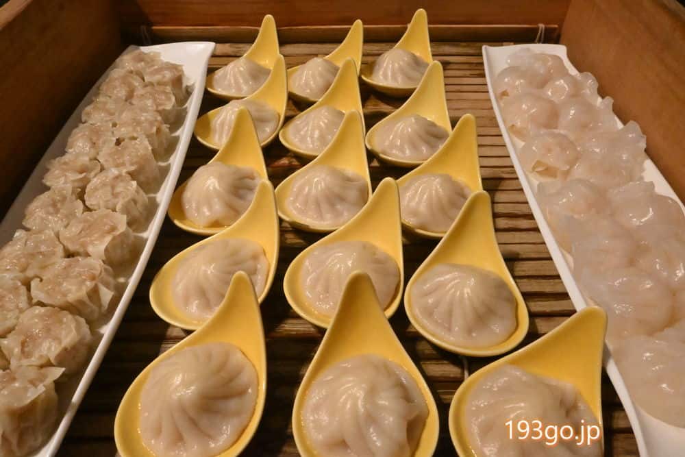 ・本日の点心3種類(小籠包、海老蒸し餃子、肉焼売)