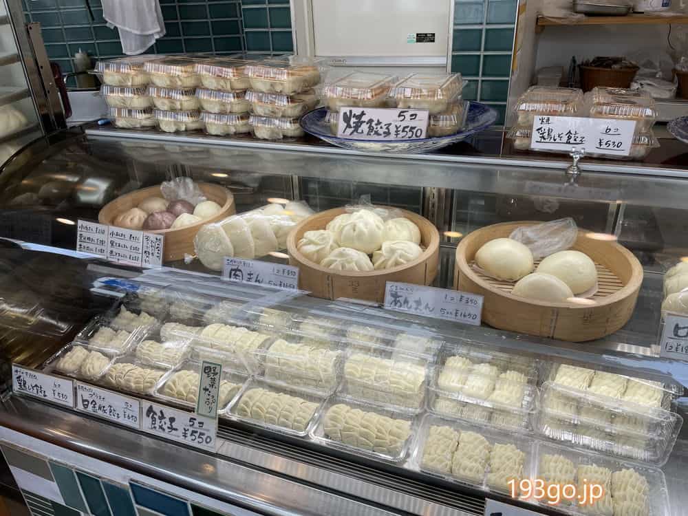 既に焼いてあるもの、冷蔵の生餃子が並ぶ。