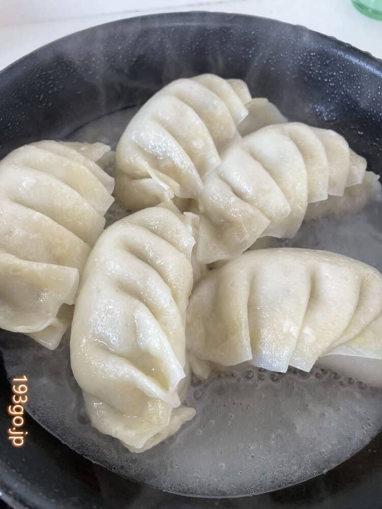 水を餃子のひだがのぞく程度にたっぷり注ぎ、