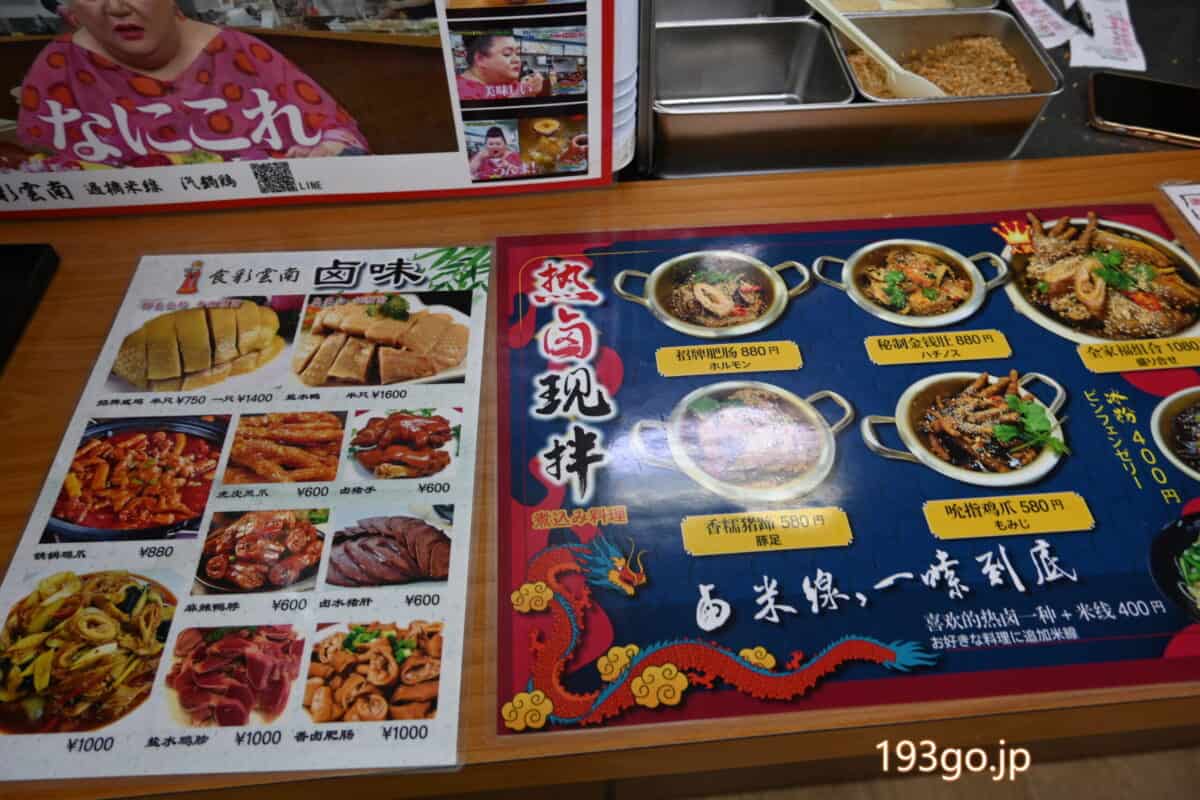中に入ると、ビャンビャン麺や飲茶に、ビーフパイ、麻辣牛肉麺など、気になる中華がズラリ。