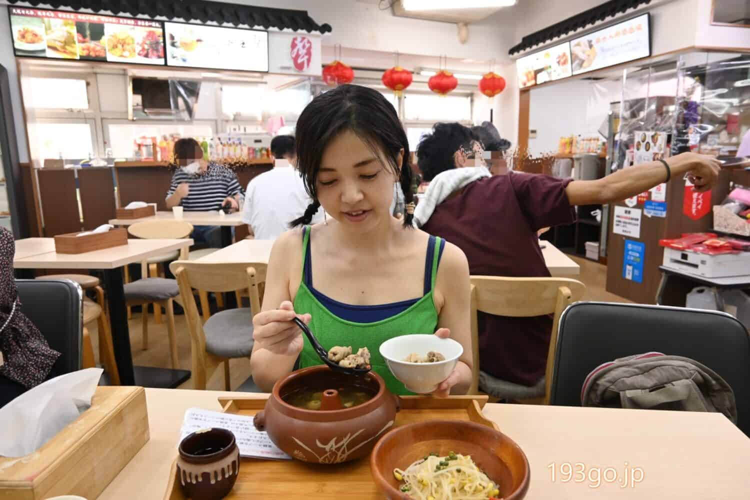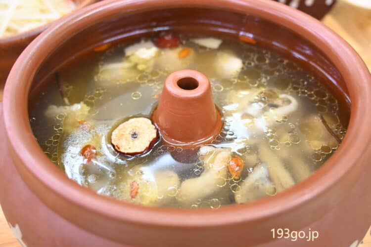 ここ「食府書苑店」以外に、四谷三丁目店、湯島店、東池袋店とあり、店員さんがオススメししてくれた薬膳汽鍋鶏スープを。