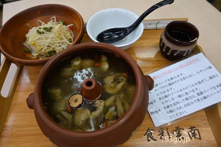 雲南料理「食彩雲南 過橋米線」の薬膳汽鍋鶏スープ