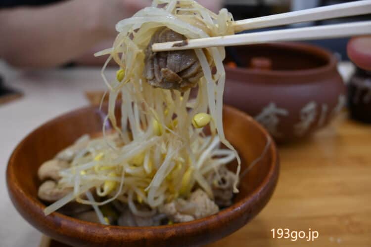 もやしのシャキシャキと煮込んだ鶏肉の旨みもたっぷり。