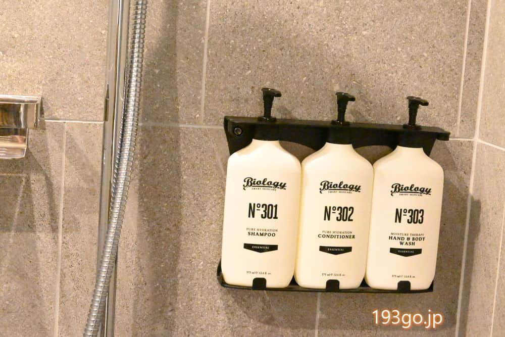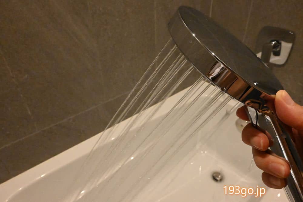 ハンドシャワーは、ヘッド部分のボタンで、細かいミストから強めの水圧の3段階の切り替えが可能。