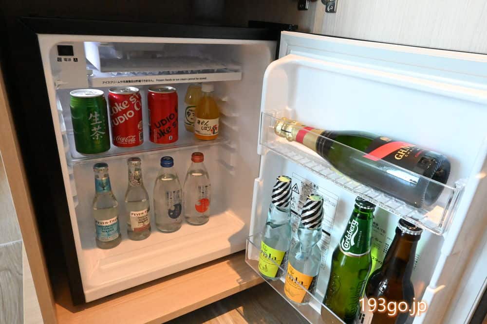 ワインや冷蔵庫内のドリンク(ミニバー)は有料となる。