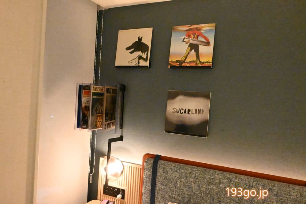 各客室にオーナー(総支配人)レベッカ・ソーンさんのセレクトによる、レコードが8枚ずつ置かれている。