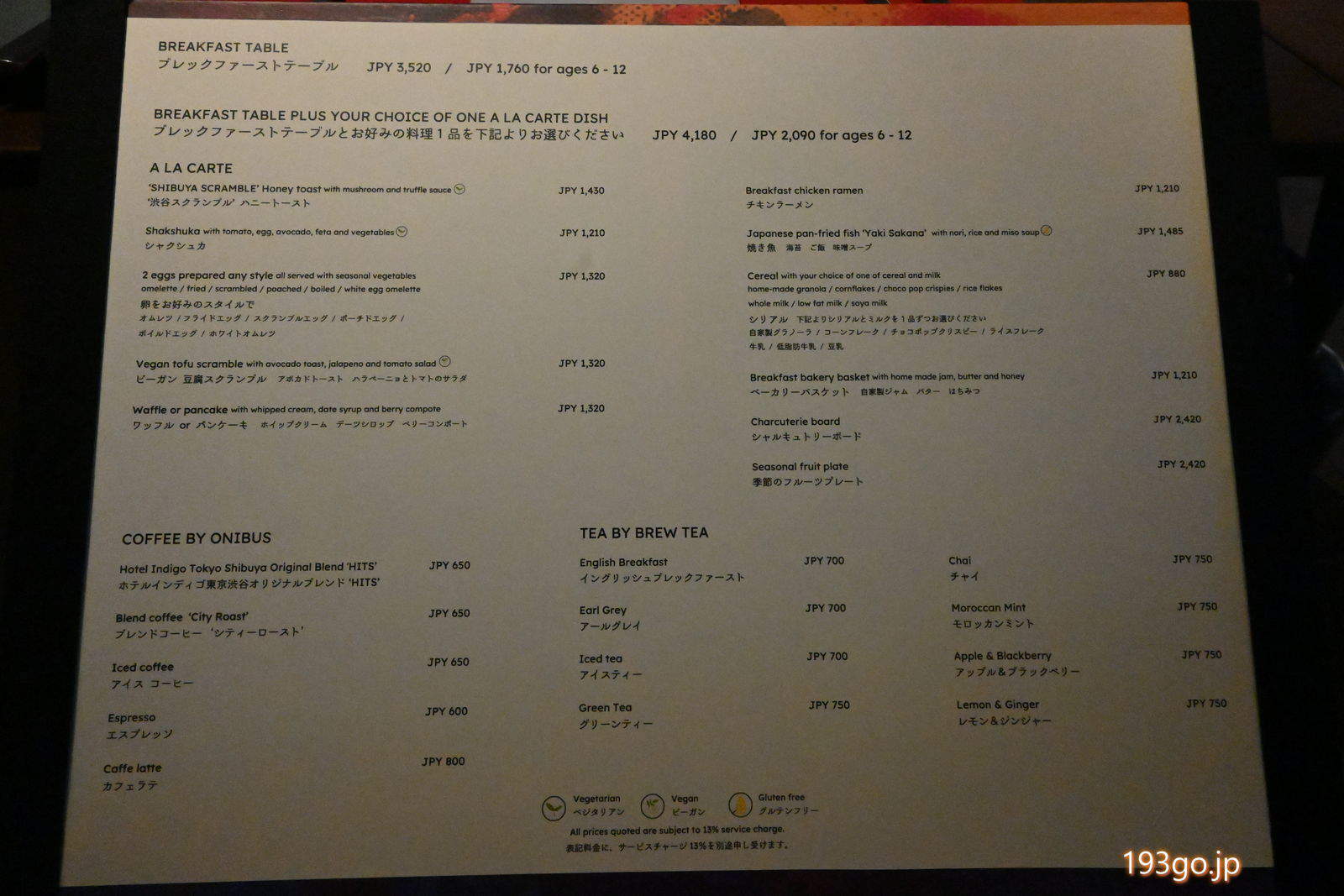 ビュッフェのみの利用は(ブレックファーストテーブル)JPY 3,520