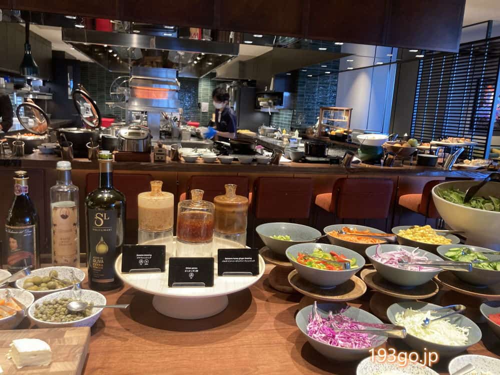 メインディッシュが届くまで、ビュッフェ台で気になる料理をピックアップ。