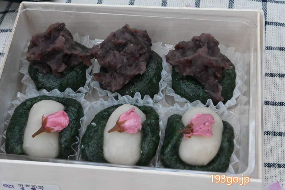 草餅が鮮やか!よもぎが濃い 桜もアクセントに