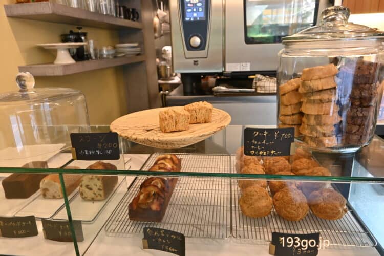 また、ショーケースには、シュークリーム:300円やプリン、スコーン:200円、クッキー:100円、パウンドケーキ:350円、タルト:450円、キッシュ:400円など手作りの焼き菓子が並び、どれもボリュームがありリーズナブル。