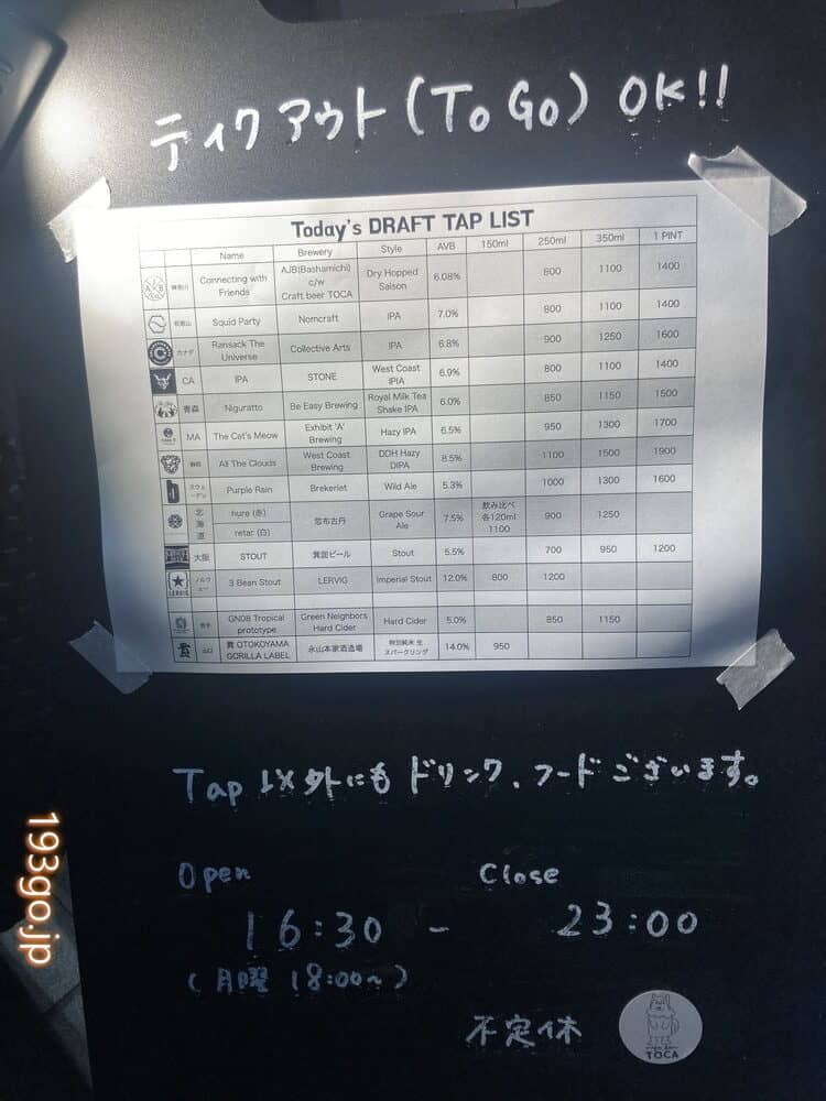 Craft beer TOCA(クラフト ビール トカ)
