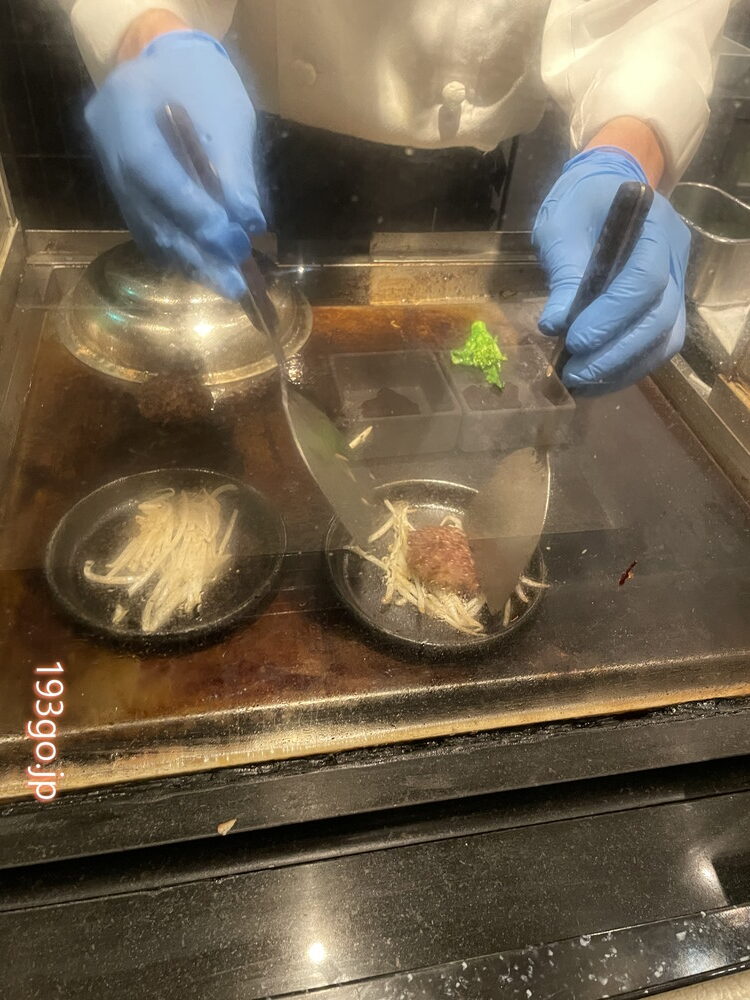 メインディッシュでは、鉄板で焼かれる「宮崎牛ハンバーグステーキ」を堪能。