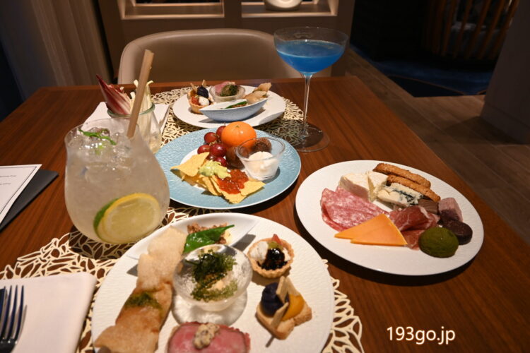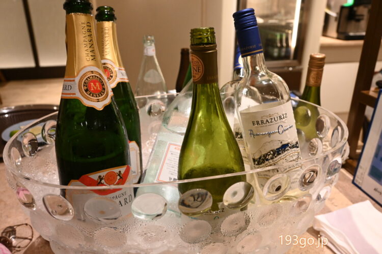 イブニングカクテル(17:30〜19:30)へ!アルコールの提供とビュッフェ、カナッペ6種も
