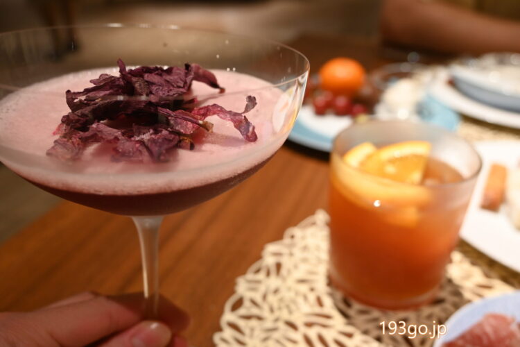 生ハムやチーズと共に2種のカクテルで、すっかりほろ酔いに~。