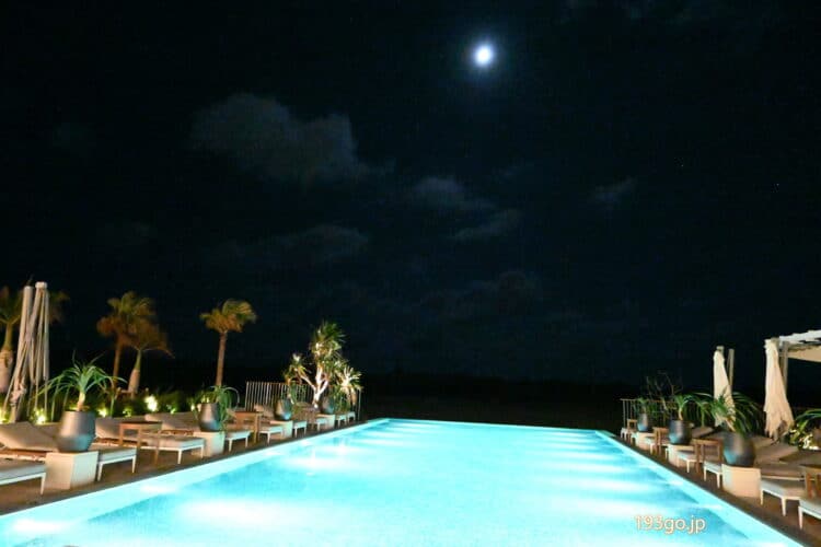 サンセットから、ライトアップしたリゾート雰囲気でカクテルタイムを満喫。
