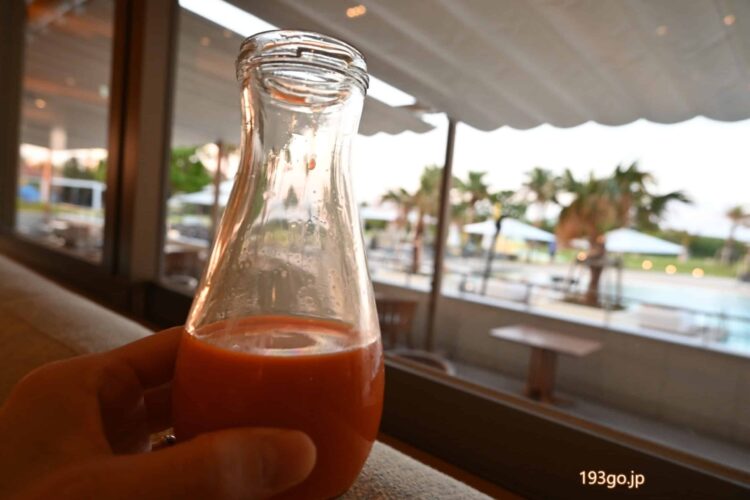 絞りたてフレッシュジュースに、フレッシュ南国フルーツ、石垣島産グリーンベジタブルサラダ、