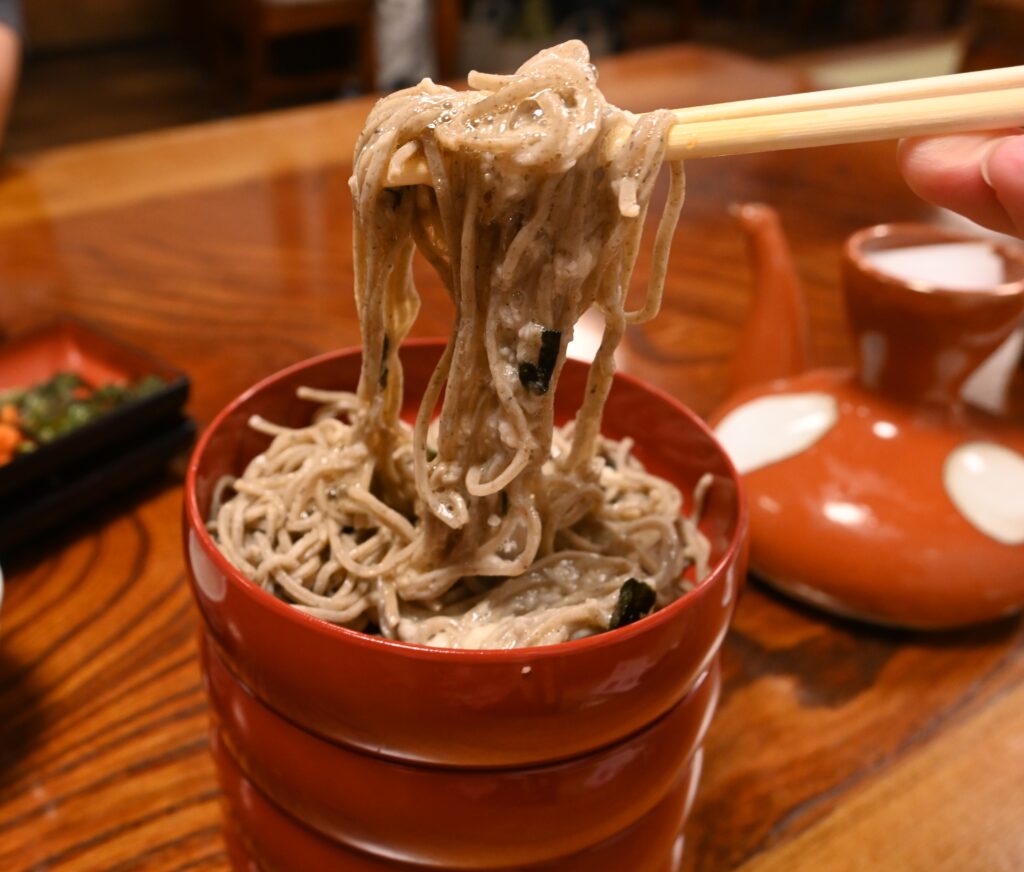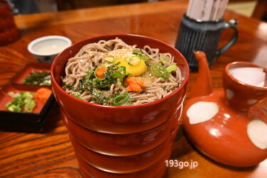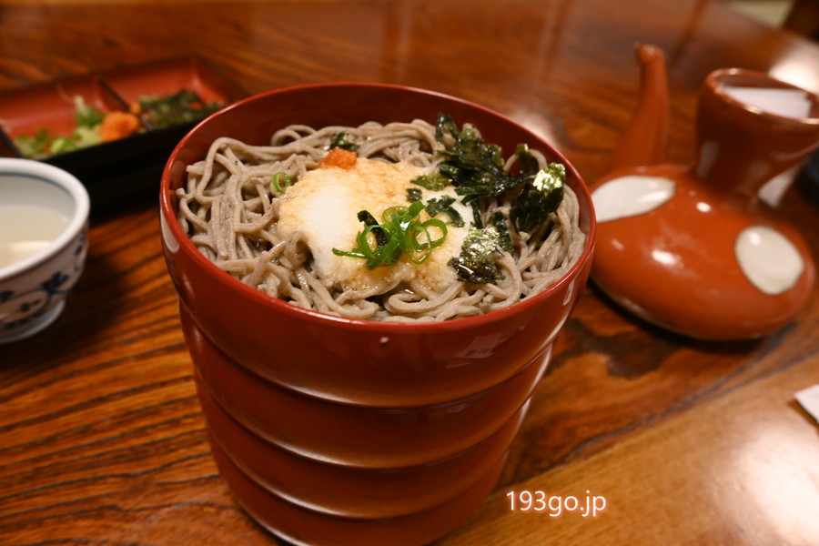 四代そば そば四段になめこおろし、有精卵、とろろ入り