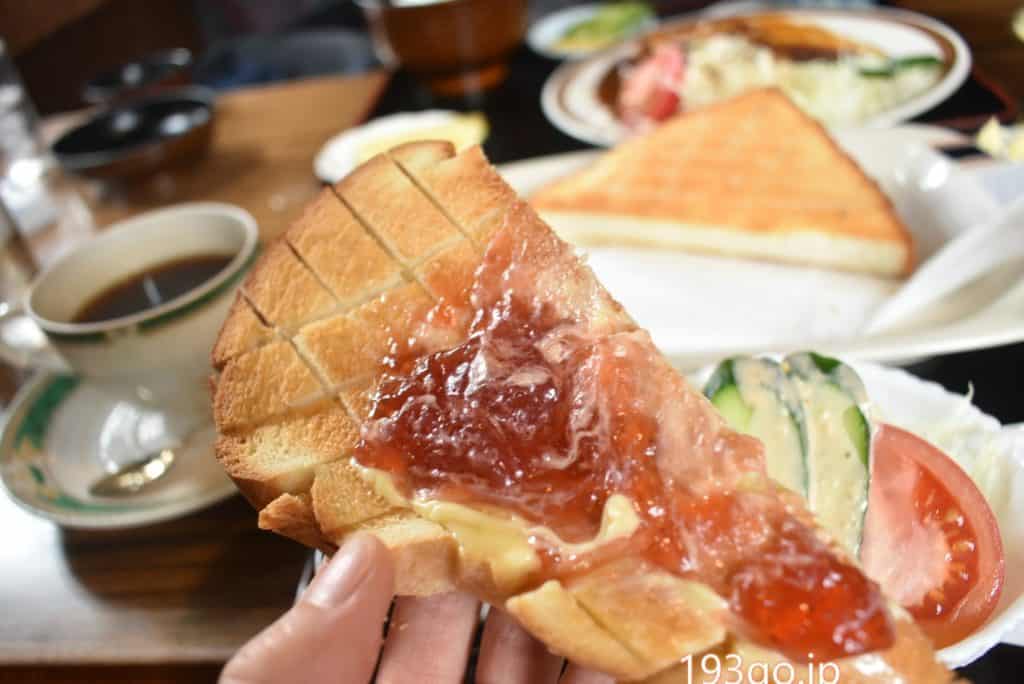 マーガリンとジャムをたっぷり塗って