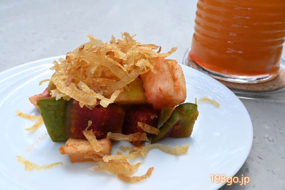 ピクルスに比べると酸味は優し目のオリジナルマリネ。隠し味に沖縄のハイサイペーストを使ってるそう。