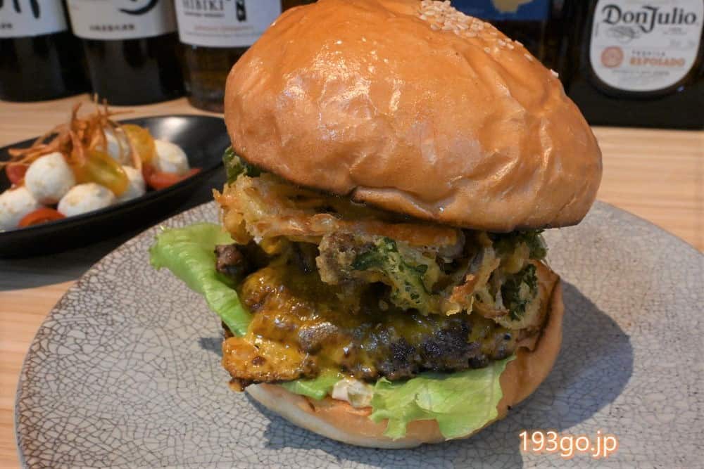 肉質がキメ細かく柔らかい雌牛にこだわったパティ2枚に、薄衣で軽やな揚げたてのかき揚げ、日本の伝統的なてりやきソースとスモーキーなBBQソースを合わせた自家製ソース。バンズの内側にはガリをまぶしたサウザンソースで爽やかな酸味が。