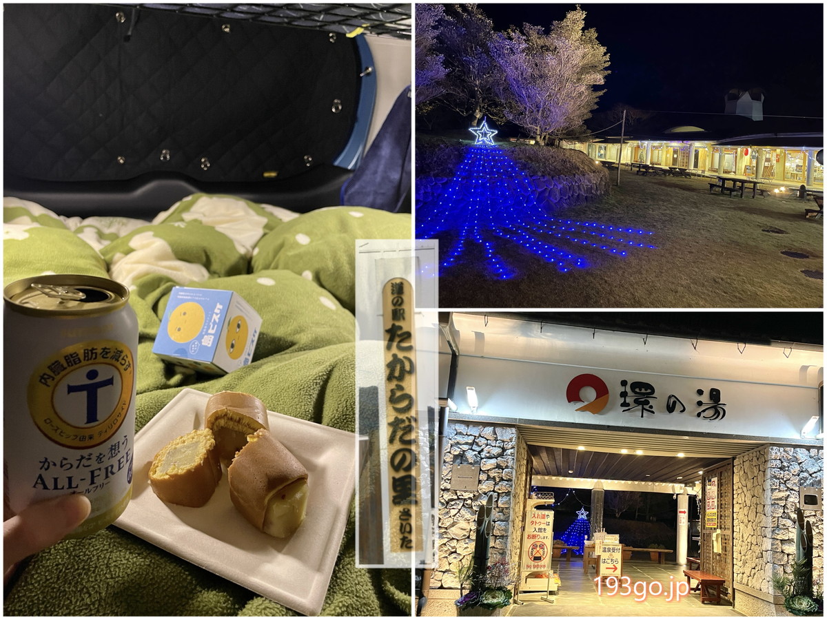 ある日の晩、香川県三豊市の道の駅「たからだの里さいた」に車中泊。