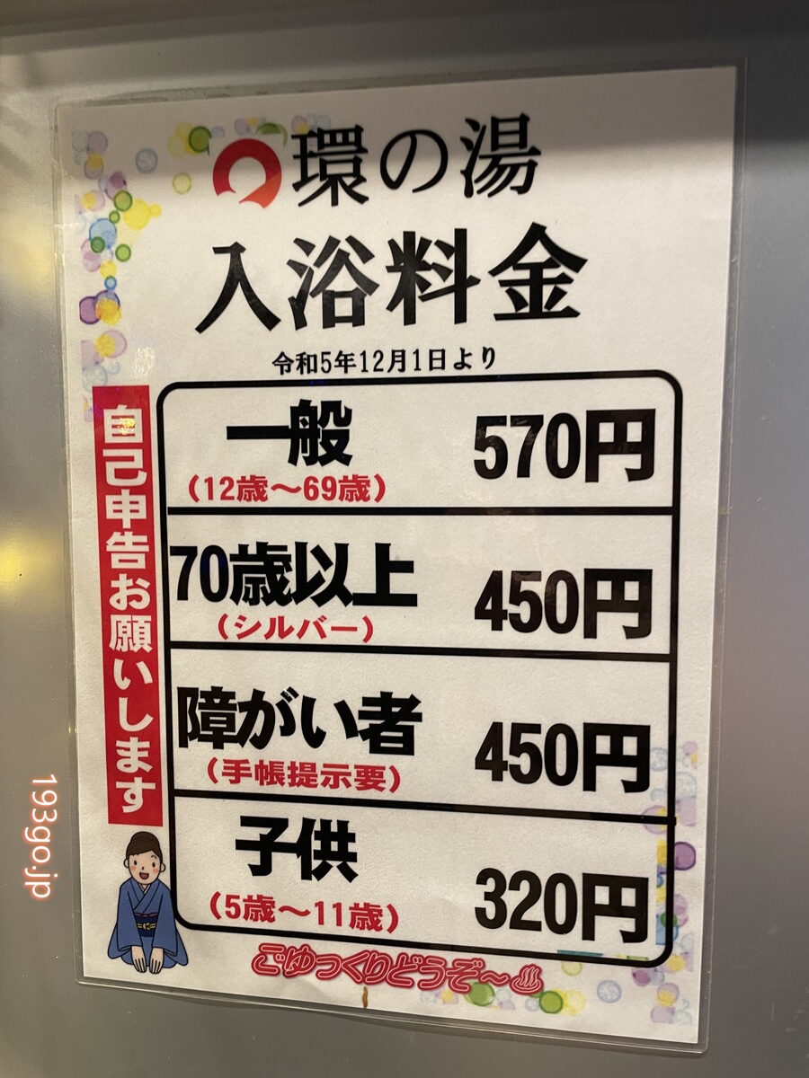 入浴料 570円(タオル・各種アメニティは受付にて販売)
