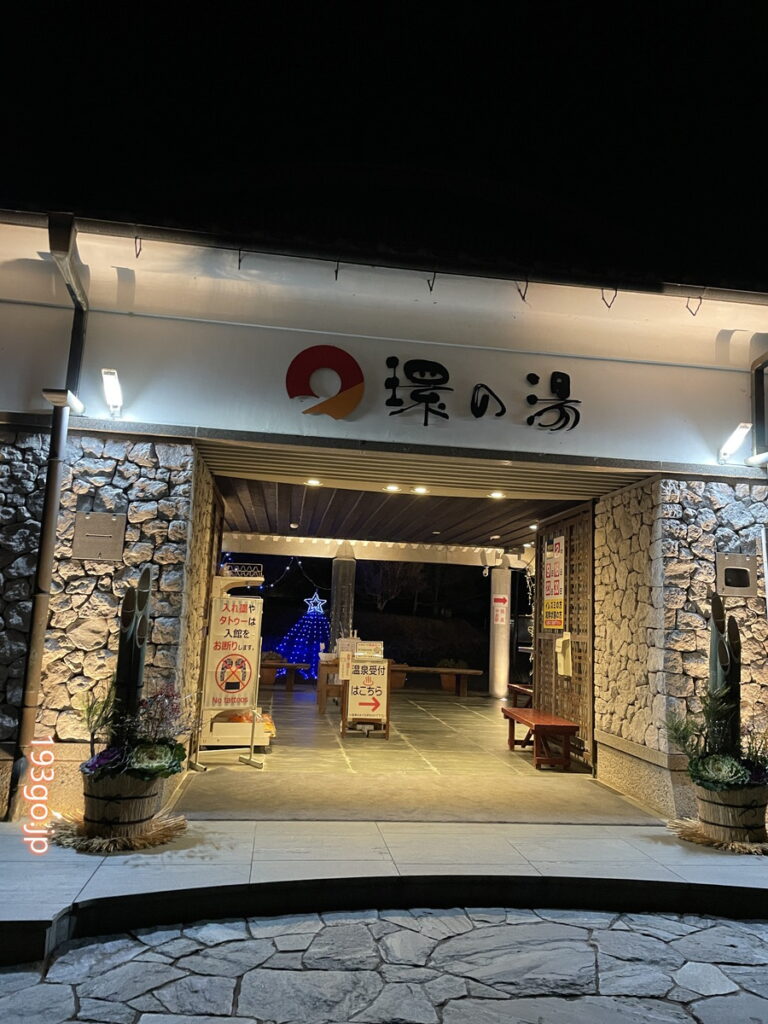 まずはお風呂入って温まろう。道の駅から1分の小高い丘の上に建つ温泉「環の湯(たまきのゆ)」