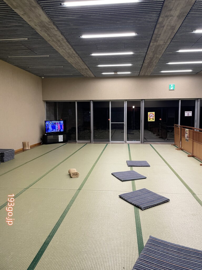 畳の休憩スペース。座布団、枕がありゴロ寝ができる。テレビも付いていた。