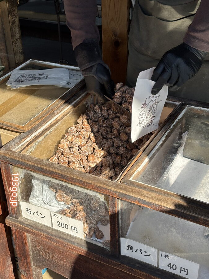 周りは生姜飴っぽいコーテイング、 石パンが固すぎて歯が欠けそう(笑)