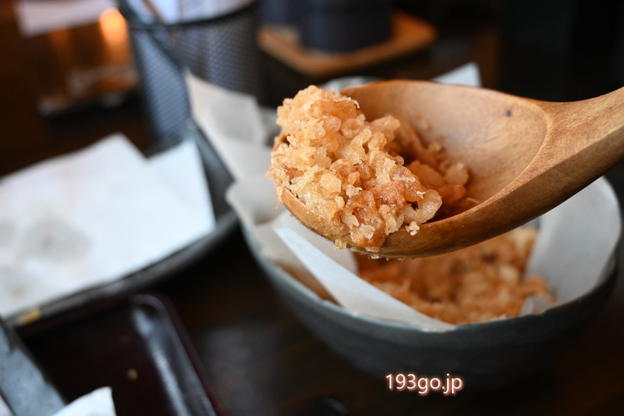 天ぷらも揚げたてでサクサク。岩塩をパラパラと。