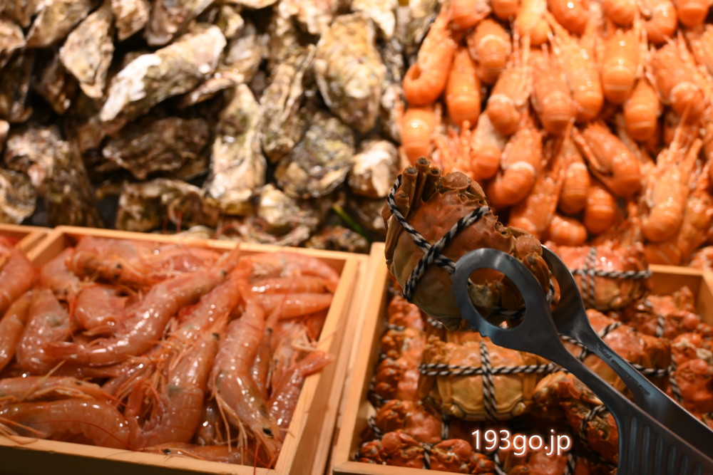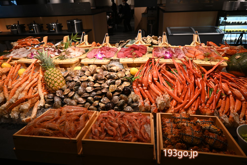 ブッフェエリアに行くと、まず目に飛び込んでくるのが山盛りの海鮮~!