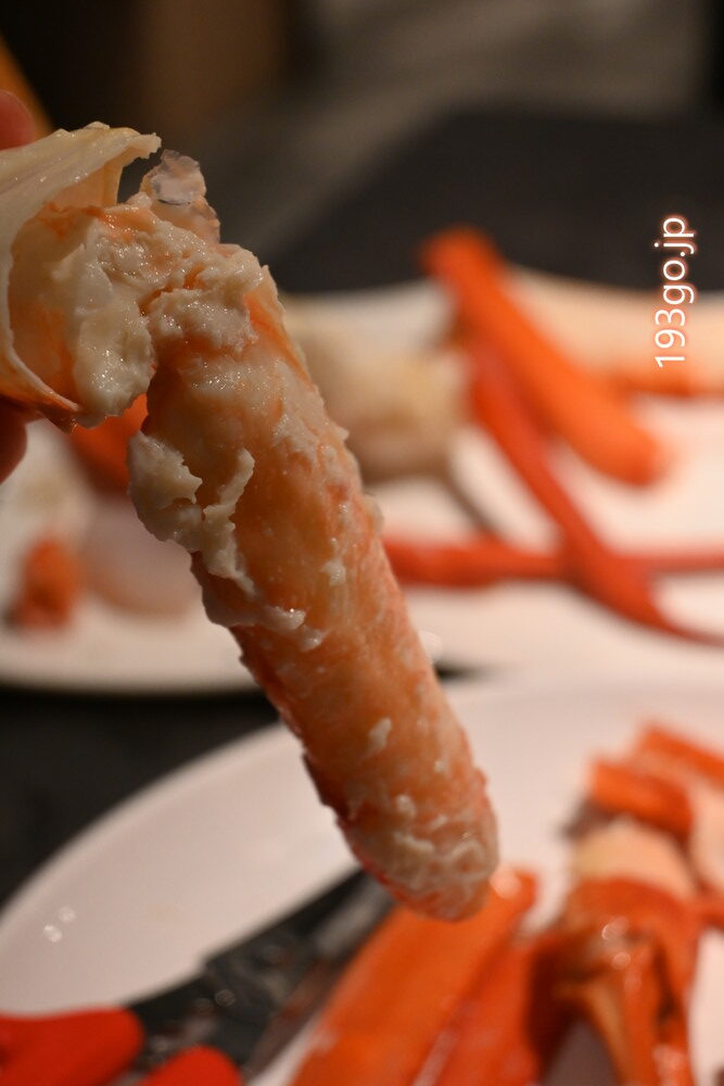 近寄ってみると、極太のタラバガニや紅ズワイガニ、伊勢海老に上海ガニ、ホタテ、ハマグリ、牡蠣…豪華シーフードがてんこ盛り!