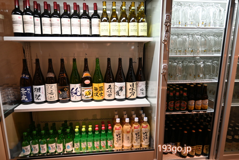 冷蔵庫にはワインやソウルマッコリ、韓国チャミスル、青島ビールに赤星など瓶ごと冷やされてるので、自分で注いだり、サワー作りも楽しい!