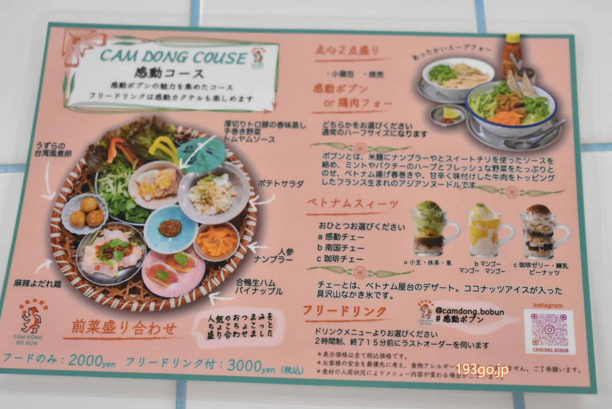 料理は前菜盛り合わせと点心2点、感動ボブンorフォー、ベトナムスイーツのチェーが付いて来る。