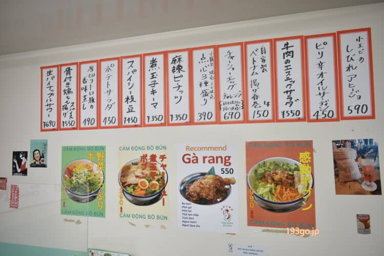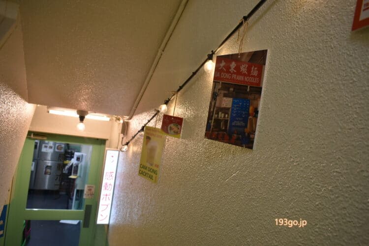 ミントブルーの壁にベトナムわら帽「ノンラー」を被ったベトナム人のアイコンが目印。ベトナムの地図も入ってる…!