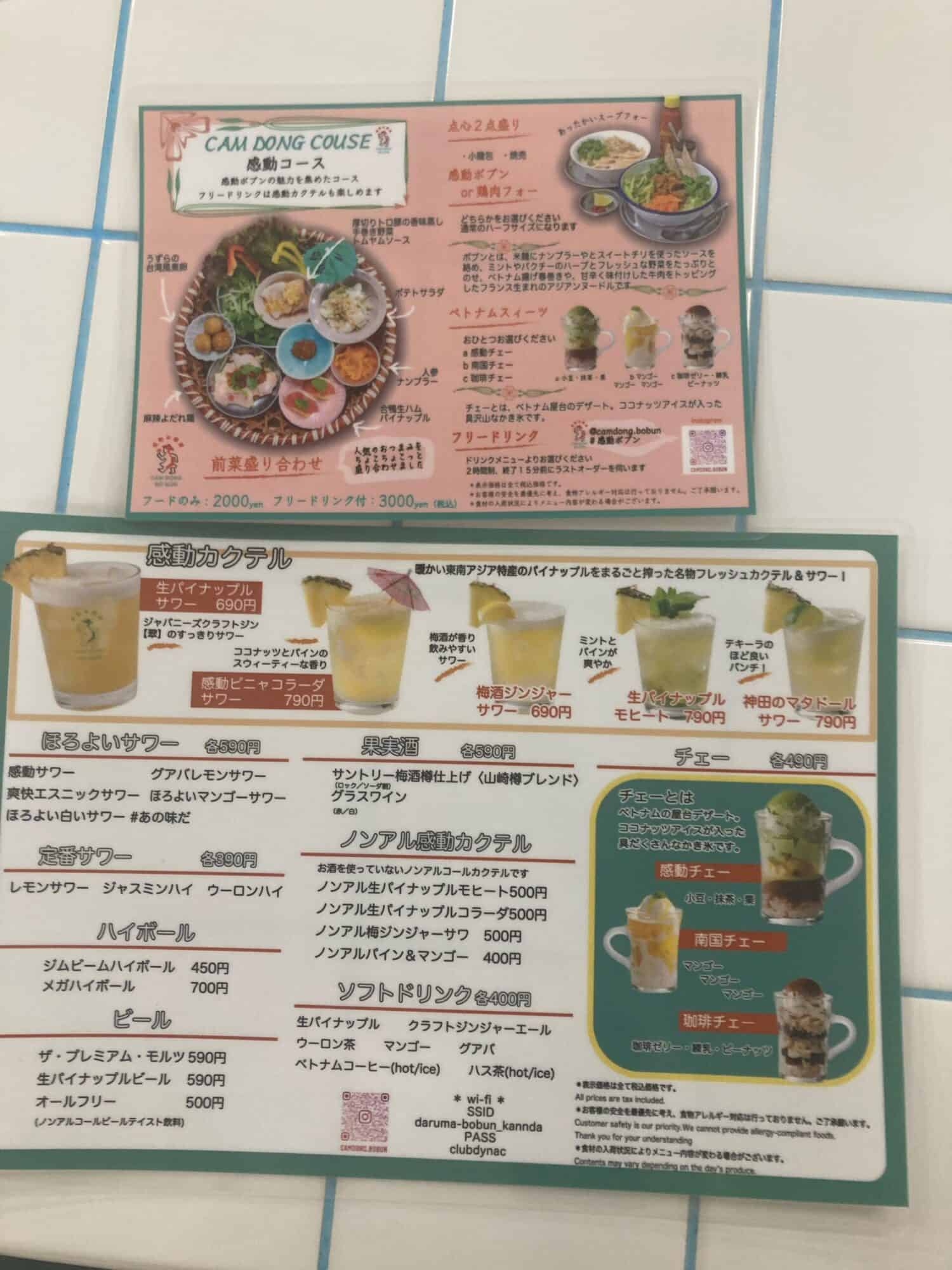 感動カクテル・生パイナップルサワーを始め、ハイボール、ビール、ノンアルカクテルに、ハス茶、ベトナムコーヒーも。