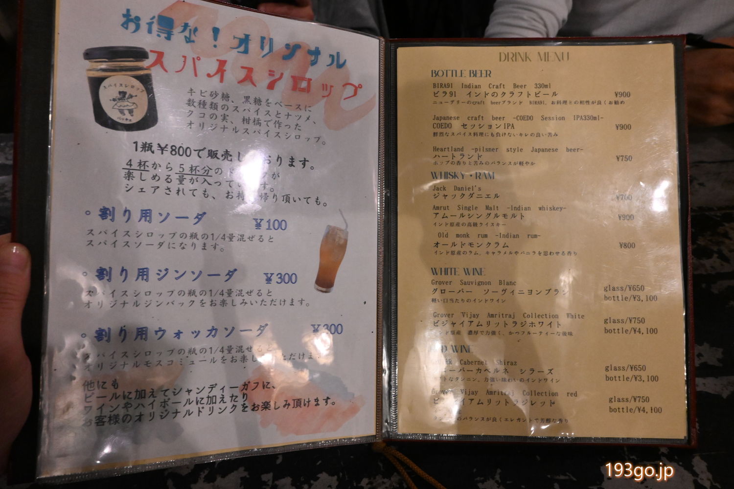 オリジナルのスパイスのシロップを瓶で購入し、ソーダやジン、ウォッカで割って堪能。