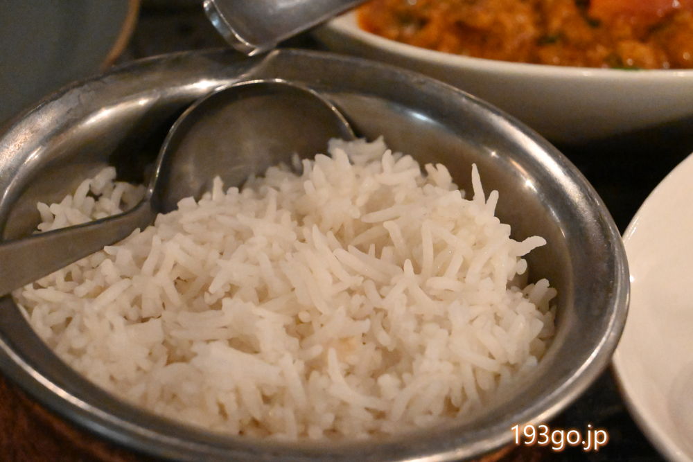香り高いパラパラのバスマティライスは、汁気のあるカレーに持ってこい。