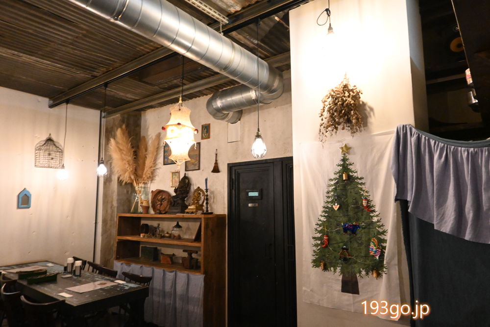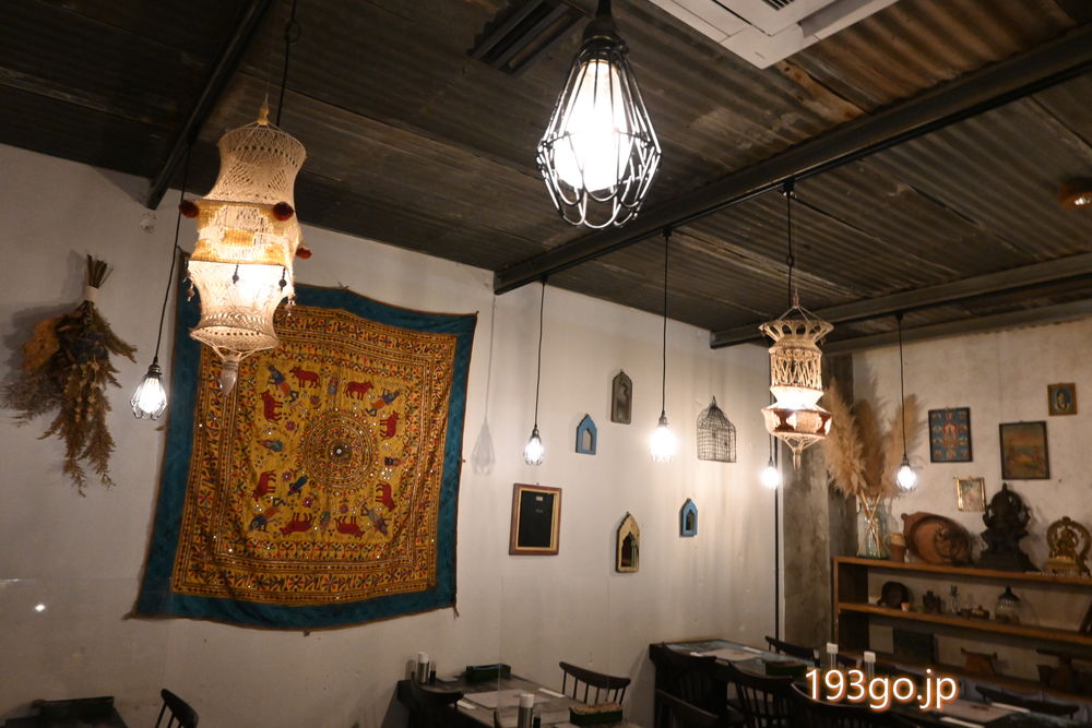 インドや季節感のある雑貨で飾られ、お客さんにはインド人と思われるグループもいて、異国情緒漂ういい雰囲気。