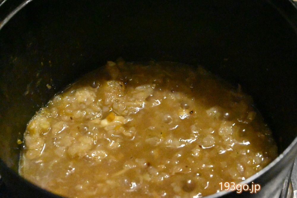 海鮮出汁を残しておき、〆に焼きおにぎりを入れてリゾットに。