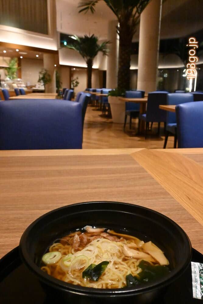 共立リゾートの名物・夜鳴きそばは、ホテル棟のレストラン「SACHI」(朝食と同じ会場)で22時~22時30分まで提供される。(当日の稼働状況によって変更になる場合あり)