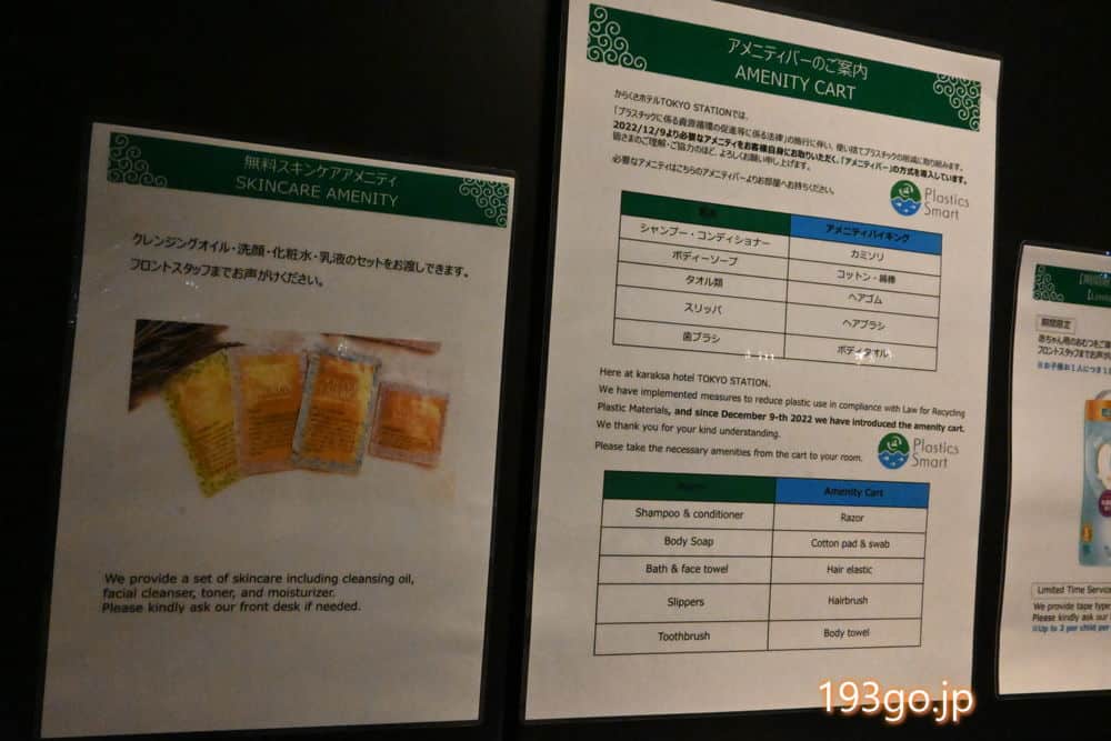 フロントでスキンケアキットの用意も。