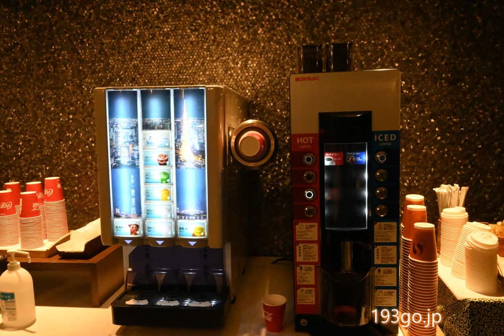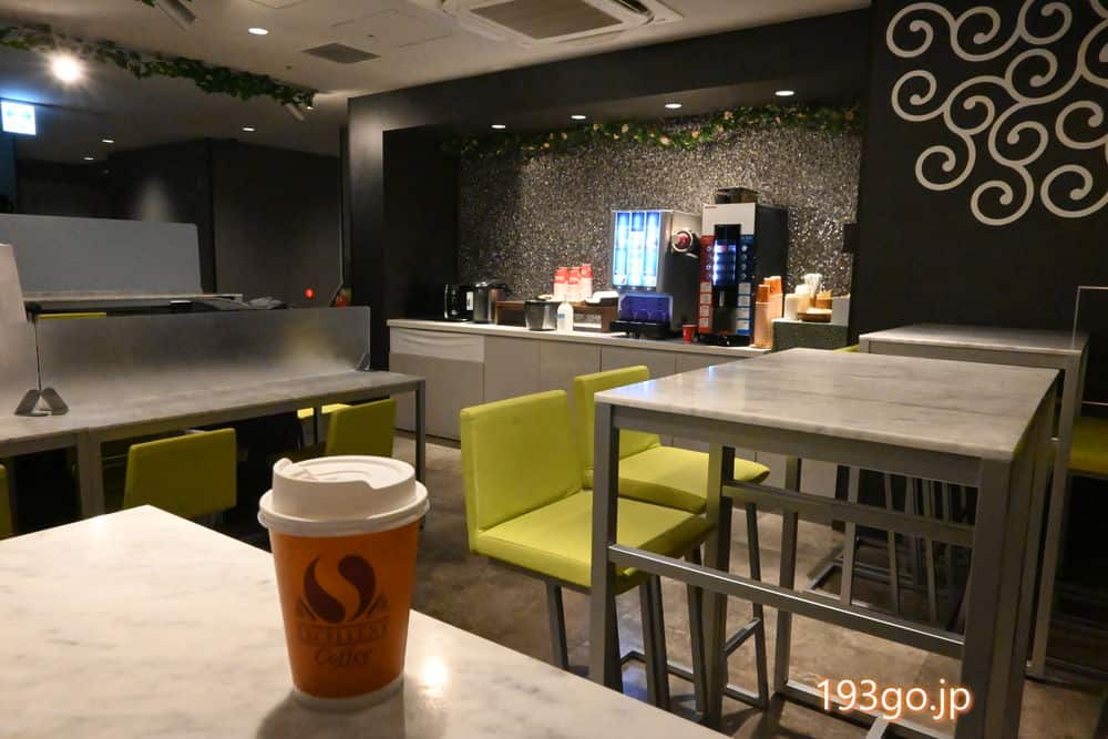 フロント横のカフェスペースではドリンクバーの利用が可能。