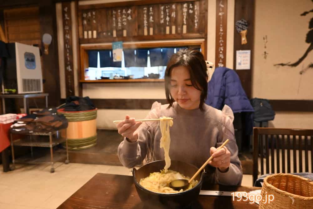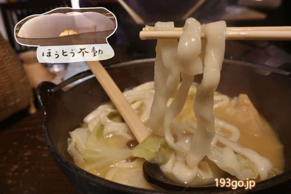 河口湖駅前の「ほうとう不動」へ!大鍋で熱々、出汁が効いたコク旨味噌スープはヤミツキ