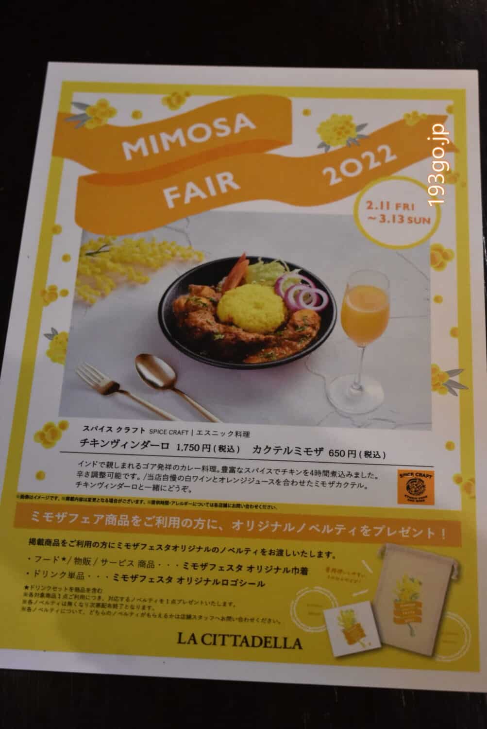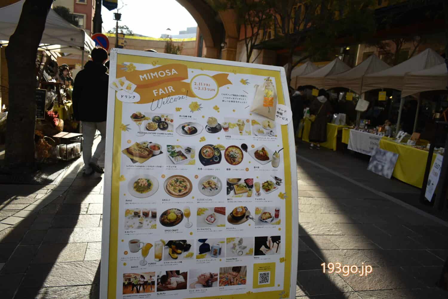 飲食店だけでも20店舗あり期間中は各店舗でミモザフェア限定のメニューも楽しめる。⇒参加店をチェック