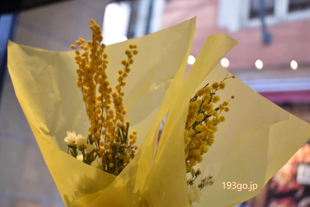 この季節は桜やいちごフェアはあっても、ミモザは日常でなかなか出会わないお花で海外気分に。