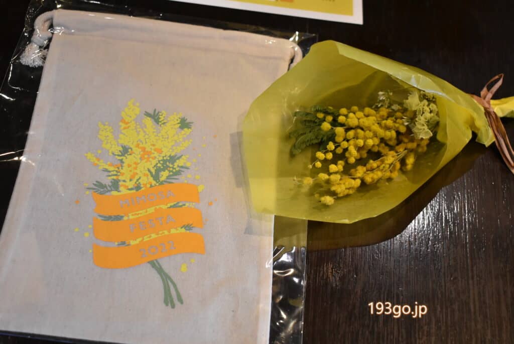 ミモザで彩られた会場でミモザグルメ巡り。2日間限定のミモザミニブーケももらい、
