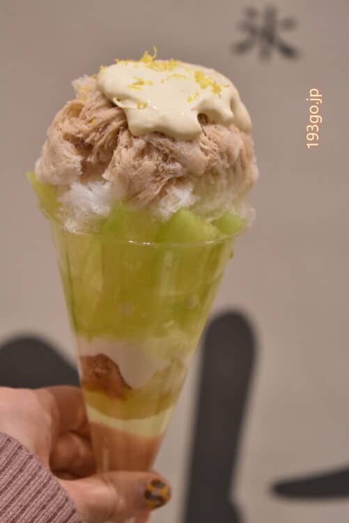 かき氷「白熊堂」ミルクティー氷のパフェ 紅茶&メロン