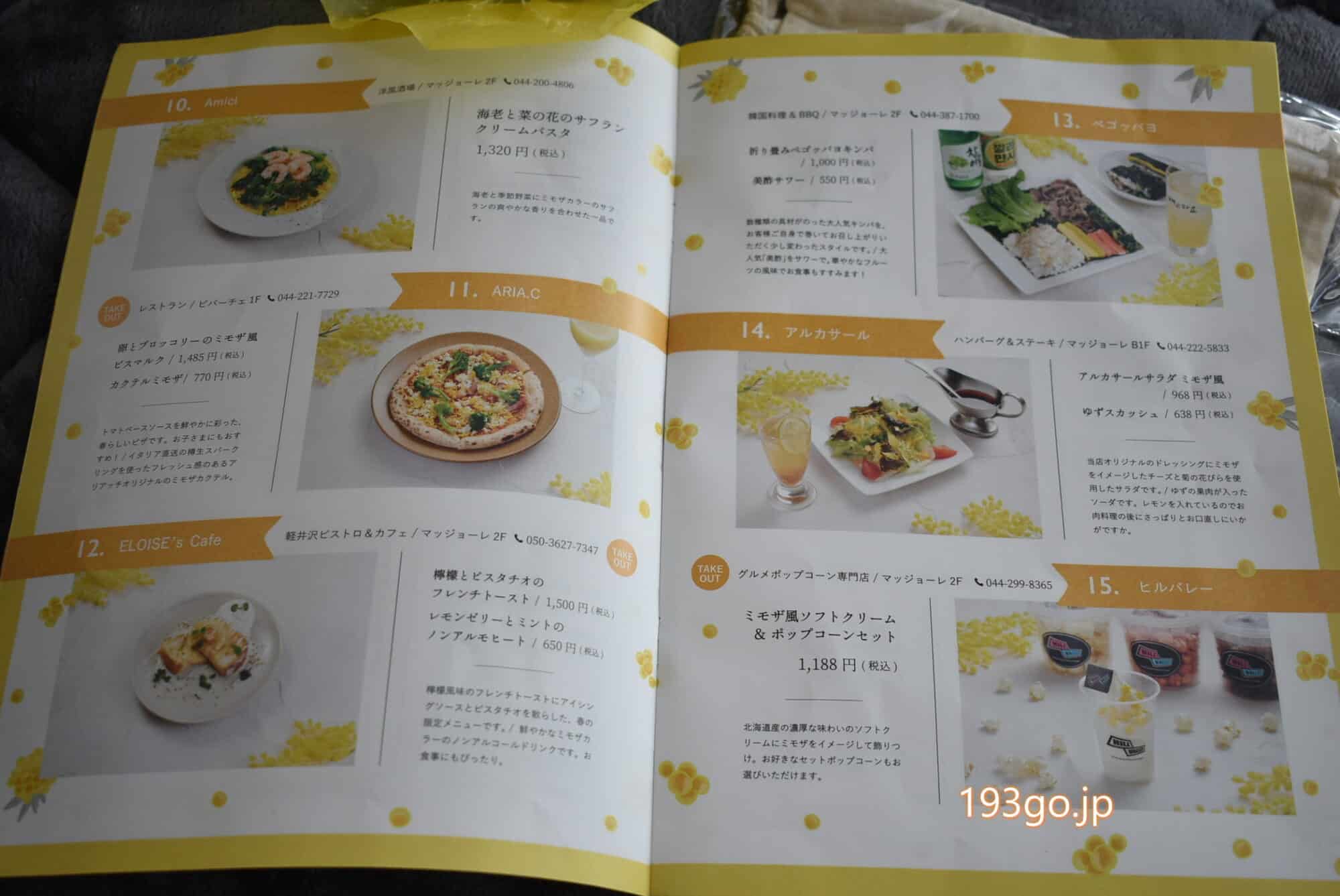 ミモザフェアのパンフレットを見ると、パフェやハンバーグ、ピザ、パスタ、海鮮丼…
