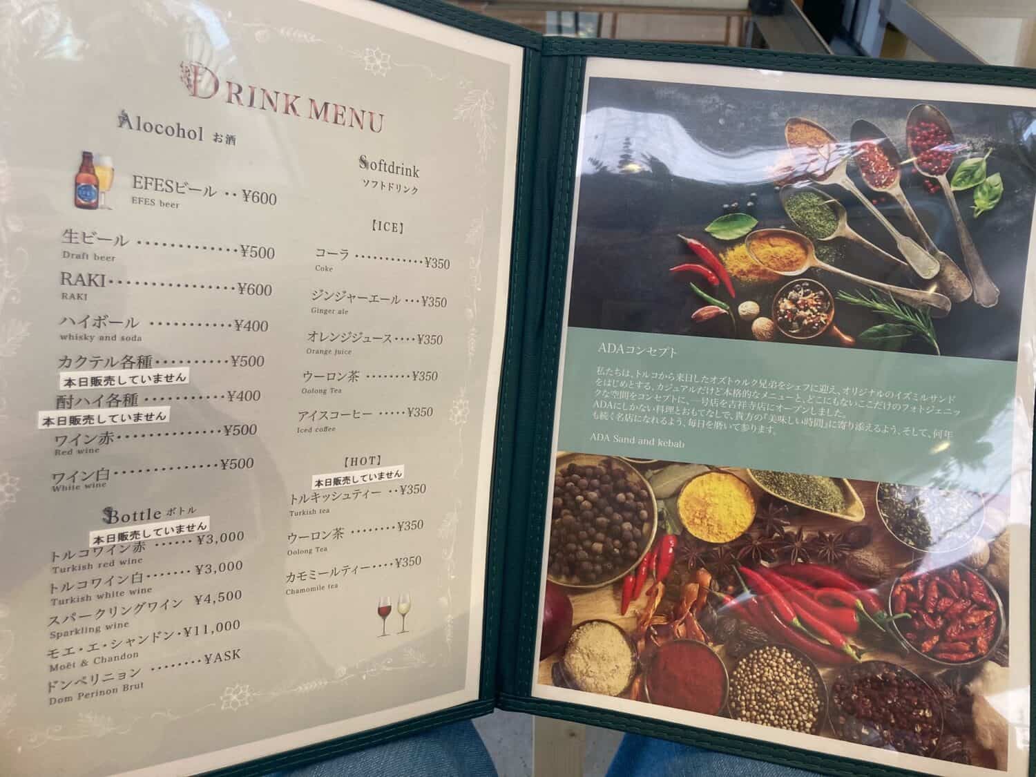 11月12日、吉祥寺にオープンしたトルコ料理「ADA Sand and kebab(アダ サンド アンド ケバブ)」に行って来ました!